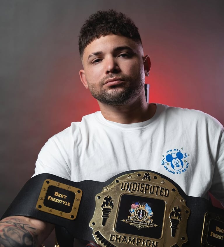 Empecé a los 19 recortando a gente del barrio, y ahí entendí que esto no era un hobby—era mi camino. Con pocos recursos compré mi primera máquina, me pegué a aprender de los mejores y fui creciendo a puro trabajo y detalle. Después vino la parte dura: crucé 8 países para llegar a Estados Unidos, trabajé en construcción para sostenerme y los fines de semana seguía recortando, porque el sueño no se pausa.